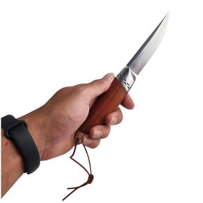 Esta faca de acampamento combina durabilidade e precisão, sendo ideal para atividades ao ar livre, como sobrevivência, caça, pesca e preparo de carne. Sua lâmina afiada proporciona cortes limpos e eficientes, enquanto o cabo ergonômico garante firmeza e conforto no manuseio. Compacta e resistente, é uma ferramenta essencial para quem busca desempenho e praticidade em