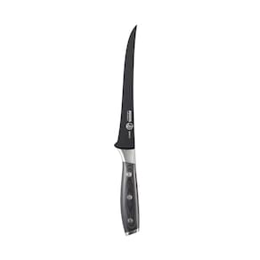 Domine suas habilidades culinárias com nossa faca de filé de 7 polegadas de ponta alta, projetada em conjunto com a lenda do churrasco Bennie Kendrick. Nossas lâminas, revestidas em titânio e fabricadas em aço inoxidável alemão X50, garantem nitidez, resistência à ferrugem e fácil manutenção. A construção completa da espiga e os suportes sólidos oferecem excelente equilíbrio e peso. A lâmina flexível e cônica da faca se destaca na remoção de ossos da carne e na filetagem de peixe com precisão. Essencial para açougueiros e entusiastas de churrasco, possui alças Pakkawood pretas completas e garantia vitalícia. Cuidado: lave à mão, evite alvejantes ou produtos de limpeza cítricos e não lave na máquina de lavar louça.