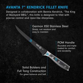 - FACA DE FILÉ PARA CHURRASCO - Cozinhe como um chefe! Projetadas para um ótimo churrasco, Bennie Kendrick, nossas facas Avanta Kendrick são feitas com lindas alças Pakkawood com rebites triplos.