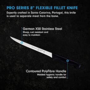Messermeister Faca de filé flexível Pro Series 20,32 cm - Aço inoxidável X50 alemão e cabo de fibra de poliéster aprovado pela NSF - Borda de 15 graus, resistente à ferrugem e fácil de manter - Feito em Portugal