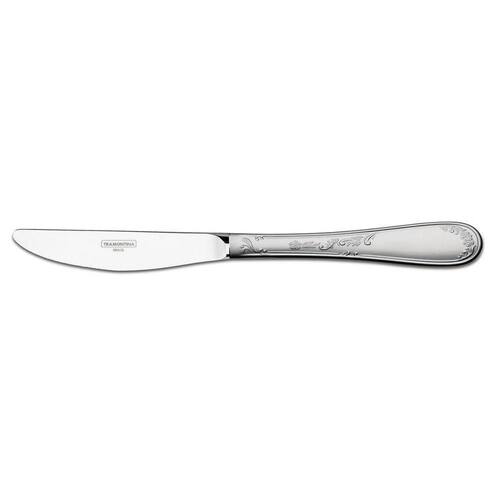 Faca totalmente temperada, que garante maior durabilidade no fio de corte e maior resistência à corrosão, e por sua característica de temperabilidade, não risca as porcelanas. Totalmente feita de aço inox, mantém suas características , preservando a beleza, a higiene e a durabilidade do material. Acabamento brilho e fosco. Própria para uso diário combina com qualquer ambiente. Pode ser lavada diariamente na máquina de lavar louças.