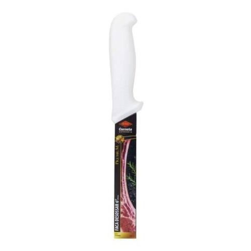 faca desossar 6' cabo branco premium dimensões da peça: 18 x 4,5 x 2,5 cm material: aço inox e pp cor do cabo: branco tipo de embalagem: bainha marca: corneta lâmina: 6” 15,2 cm espessura da lâmina: 2,5 mm indicação: • indicada para retirar ossos, gorduras ou cartilagens das carnes. recomendações: • mantenha a faca afiada. • sempre guarde a faca seca. atenção: • cuidado ao manusear produtos cortantes e perfurantes. • guarde em local seguro. • guarde estas instruções para futuras consultas. • manter fora do alcance das crianças./p