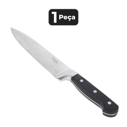 Faca profissional e forjada, feita em uma só peça (monobloco), garantindo durabilidade e resistência. Sua lâmina é feita em aço inoxidável, obtendo um nível de dureza através do sistema de têmpera, que proporciona um fio preciso e durável. O desbaste é em V, perfeito para um corte preciso, obtendo excelência nos resultados e facilitando a afiação.