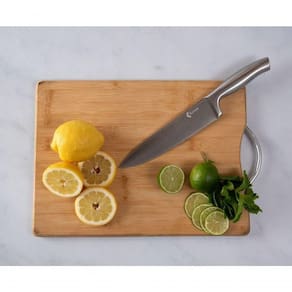 Faca Do Chef Aço Inox 24cm Kenya Prata Conheça a Faca Profissional do Chef, e tenha na sua cozinha maior variedade de facas para executar as melhores incisões e preparos. Com corte preciso e cabo confortável, essa faca proporcionará facilidade e praticidade no preparo das suas refeições.A Faca de Cozinha do Chef é uma ferramenta essencial para qualquer chef ou entusiasta da culinária que busca qualidade e precisão em seus preparos. Com lâminas afiadas e resistentes, essas facas foram projetadas para cortar, picar e fatiar com facilidade e eficiência.Especificações do Produto:- Faca com lâmina precisa, fabricada em aço inoxidável, ideal para o dia a dia- Apresenta uma grande versatilidade, corte legumes, carnes, frutas e muito mais- Design moderno e de fácil limpeza- Garante resultados impecáveis em suas receitasFicha Técnica:- Código: 4081660117- Marca: Kenya- Material: Aço Inox- Cor: Prata- Peso: 153g- Dimensões: 24cm x 7,5cm x 3,5cm (AxLxP)- Garantia: 3 Meses (Contra defeito de fabricação) Altura - 24cm Largura - 7,5cm Profundidade - 3,5cm Peso - 153g Sobre a Marca - A marca brasileira Kenya oferece produtos com ótima relação custo-benefício para os principais ambientes da casa, com seu portfólio dividido em Mesa, Vinho e Bar. Simplicidade e elegância são características fundamentais da marca, que traz em cada coleção de produtos para cozinha, banheiro, lavanderia, organização, entre outros, as novidades alinhadas com as últimas tendências do mercado internacional.