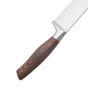 O corte preciso da Faca do Chef Wood economiza tempo e esforço no dia a dia! A lâmina em aço inox tem longa durabilidade, resiste ao contato com a água e não interfere no sabor dos alimentos. Já o cabo em ABS é ergonômico e se adapta bem ao formato da mão.
