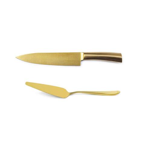 Contem: 1 Faca Chef 8" Dimensão: 33 x 4,5 cm 1 Espatula de Bolo Dimensão: 24 x 4,5 cm Material: Aço Inox