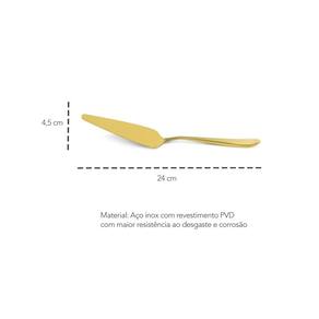 Utensilios de cozinha dourado. Talheres de cozinha da linha Lovers Ouro possui design em linhas ovaladas, e acabamento acetinado que garante um design moderno, que combina com qualquer estilo. Produzido totalmente em inox de alta qualidade, com banho especial em PVD ((Physical Vapor Deposition), processo que produz vapor metalico de camada colorida e proporciona maior resistencia ao desgaste e corrosao, prolongando o periodo de vida util das peças. Esses talheres com certeza irao te surpreender. E podem ser lavados em maquinas de lava-louças e comparados a outros tipos de materiais, sao bem mais resistentes e duraveis.