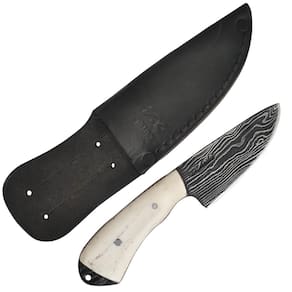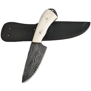 Faca Edc Artesanal Pequena Coreadeira Forjada em Aço Damasco Cabo Osso D'avila