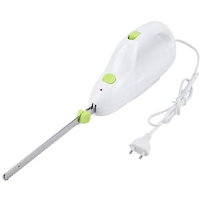 Faca elétrica com lâminas duplas de aço inoxidável, design de interruptor duplo de segurança, lâmina serrilhada alternativa para cortes uniformes, corpo e lâmina destacáveis para fácil operação.Vendido e entregue por Ecletiq