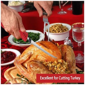 O Facão Elétrico Sem Fio Recarregável é perfeito para camping, pesca e atividades ao ar livre. Com ele, você pode cortar ingredientes em qualquer lugar, a qualquer momento. Além de lidar com peixes de todos os tamanhos, também é ideal para cortar peru, carne bovina, carneiro e muito mais. Sua ergonomia proporciona um agarre confortável, permitindo realizar tarefas de corte com destreza, reduzindo a fadiga das mãos e pulsos. O botão de segurança garante um uso seguro, evitando ligar acidentalmente. Fácil de usar e confortável de segurar, basta pressionar e segurar o botão de liga/desliga para operar o facão elétrico. As lâminas são facilmente removíveis com o botão de liberação rápida e podem ser lavadas na máquina de lavar louça para uma limpeza rápida e fácil. Com lâminas afiadas a vácuo, este facão elétrico possui serras independentes que tornam o processo de corte mais fácil. Equipado com motores avançados que reduzem a geração de calor, proporcionando uma experiência mais agradável ao segurá-lo. Aproveite ao máximo este produto incrível!