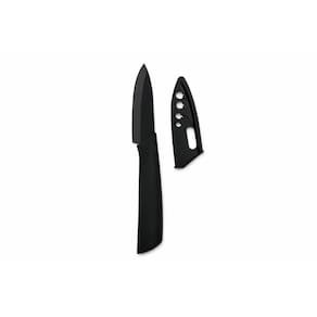 Seu design totalmente preto traz mais elegância à cozinha, enquanto o cabo anatômico emborrachado garante firmeza e segurança no manuseio. Além disso, acompanha bainha protetora, proporcionando mais segurança no armazenamento.