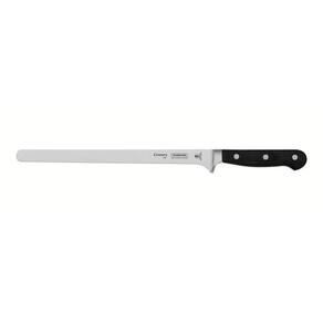 Para fatiar salames, copas, presuntos e demais fiambres a Faca para Fiambres Tramontina Century com Lâmina em Aço Inox e Cabo em Policarbonato 10 polegadas é a escolha perfeita. Desenvolvida especialmente para esses cortes, a Faca para Fiambres Tramontina possibilita a você fazer fatias perfeitas do seu alimento predileto. A lâmina em aço inox com tratamento térmico alia durabilidade e eficiência. Seu cabo em policarbonato com fibra de vidro tem acabamento anatômico, que permite destreza e segurança ao manipular o instrumento. Além de todas essas qualidades, ela ainda tem de 25 anos contra defeitos de fabricação e pode ser levada à máquina de lavar.br /Ideal para cortar fatias finas de fiambres.br /A lâmina forjada de aço inox especial garante um fio com maior durabilidade e precisão. br /A lâmina possui tratamento térmico diferenciado, composto por têmpera, sub-zero e revenimento. br /E conta com dureza da lâmina de 55 e 58 HRC, que garante maior resistência do fio e precisão no corte. br /O cabo de policarbonato reforçado com fibra de vidro garante alta durabilidade, equilíbrio e segurança. br /O cabo ergonômico proporciona maior segurança, equilíbrio e conforto na hora do corte. br /Pode ir à máquina de lavar louças facilitando seu dia a dia.br /Antes da primeira utilização, lave bem a peça e seque-a. br /Produto cortante e perfurante: tenha cuidado ao manusear e mantenha fora do alcance das crianças. br /Para maior durabilidade do produto recomenda-se secar bem antes de guardar, mesmo após lavagem em máquina. br /Recomenda-se o uso de tábuas de polipropileno ou madeira da Tramontina para maior durabilidade do fio da faca. br /Não é indicado o uso da faca para o corte de alimentos congelados. br /Mantenha sempre sua faca afiada utilizando os afiadores da Tramontina.br /Para descarte dos produtos e embalagens siga as orientações de reciclagem vigentes.br /br /EAN13: 7891112004979br /DUN14: 17891112004976br /NCM: 8211.92.10br /Peso Líquido: 0,1380 kg.br /Peso Bruto: 1,1430 kg.br /Metragem: 0,000168 m.br /br /Dimensões Produto: Compr. X Larg. X Alt. : 377x 28x 15 mm.br /Cor 1: 000000 Hexabr /br /Dimensões: Compr. X Larg. X Alt. : 377x 28x 15 mm.br /Cor 1: 000000 Hexbr /br / do Fornecedor: 25 anos 90 dias de legal, acrescidos de 24 anos e 09 meses de contratual para vícios ou defeitos de fabricação.br /br /Linha Comercial: Century Marca: Não Informado