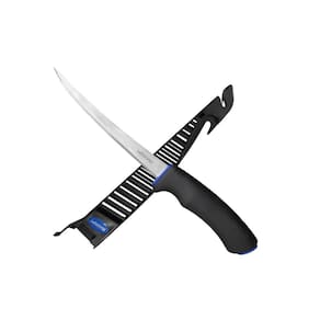Um extraordinário produto da Marine Sports, esta faca fileteira é equipada com lâminas excepcionalmente afiadas feitas de aço inoxidável. Seu cabo ergonômico é revestido em borracha, proporcionando grande durabilidade e conforto.