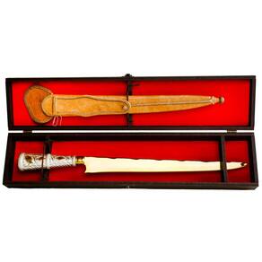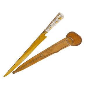 • 1 Faca 1 Bainha em couro cru, costurada a mão 1 Registro de propriedade 1 Manual de recomendação de uso