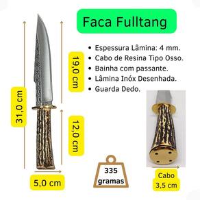 Faca lâmina inox desenhada cabo resina imitando osso com bainha