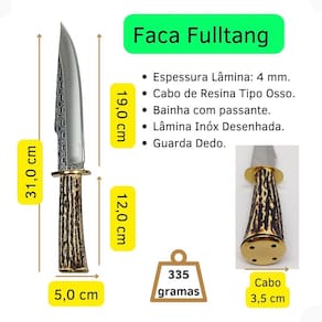 Comprimento total da faca: 31,0 cm;