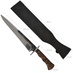 Dimensões da faca com bainha: 40cm (C) x 4,5cm (L) x 7,5cm (A);
