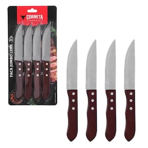Faca jumbo para churrasco de inox com cabo de madeira 4 pçs Faca jumbo para churrasco de inox com cabo de madeira leme 4 peças