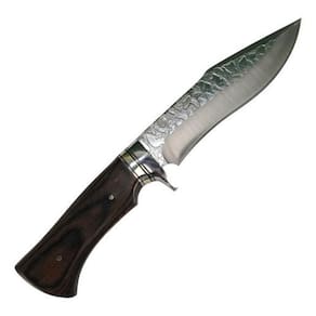 A faca possui um cabo de madeira e uma lâmina de aço inoxidável Para uma maior Durabilidade, Bainha de Nylon para Transporte e proteção do Fio de Corte da lamina Essa faca é versátil e adequada para uma variedade de tarefas. Com seu cabo confortável e lâmina afiada, ela proporciona um manuseio preciso e seguro.
