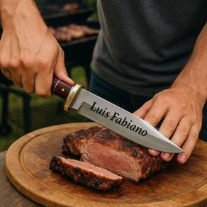 Esta não é apenas uma faca; é uma obra-prima da arte da cutelaria - uma fusão impecável entre habilidade artesanal e precisão técnica. Cada lâmina é cuidadosamente trabalhada por mestres cuteleiros, garantindo um fio extremamente afiado e duradouro, pensado para quem valoriza qualidade e desempenho na cozinha ou no churrasco.