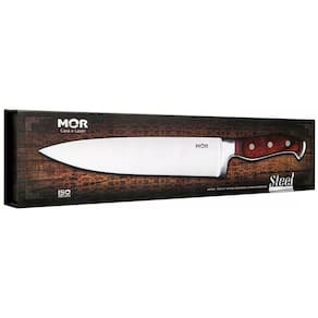A Faca 10 da linha Steel da Mor tem design sofisticado e atraente. Com cabo em madeira tratada e lâmina afiada em aço inoxidável, é leve, resistente e de fácil manuseio, perfeita para auxiliar nas tarefas da cozinha. Elegância e bom gosto embalado em uma caixa colorida e bem trabalhada, sendo uma excelente opção para presente.