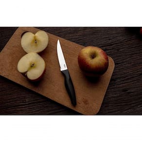 Descrição 1000 caracteres - Conheça a Faca multiuso 4 1/2 polegadas (22 cm) com lâmina aço inoxidável polido cabo plástico preto Cross Brinox. É o produto versátil que completa a sua linha de facas prontas para o uso no seu dia a dia. Com uma lâmina em aço inoxidável temperado com tratamento térmico e acabamento polido, a Faca Multiuso é segura e durável, proporcionando uma excelente afiação por um longo período de tempo. Assim como as demais facas da linha Cross, a Faca Multiuso é durável e eficiente durante o uso. Os cabos ergonômicos em polipropileno, na cor preto possuem textura antiderrapante, são ideais para uso diário no preparo de diversos tipos de alimento, proporcionando maior praticidade durante o corte e limpeza da faca. É leve e segura para cortar, picar e fatiar pequenos alimentos. E para completar a sua experiência na cozinha conheça também a linha completa de facas Cross, afiadores de facas Brinox e tábuas de bambu para corte Haus, você vai brilhar no preparo de alimentos.
