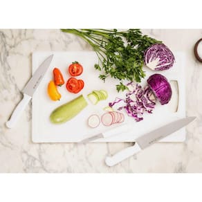Detalhes do produto: - Possui selo NSF, e proteção Antimicrobial Sanitized, uma garantia da higienização e não proliferação de microrganismos; - Indicada para cortar carne crua, peixes, frutas e legumes. Ideal para picar e fatiar alimentos espessos ou finos; - A lâmina possui afiação e polimento profissional.