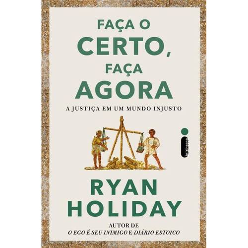 Em seu novo livro sobre as virtudes estoicas, Ryan Holiday apresenta a justiça como a virtude que deve orientar quem escolhemos ser.Na antiguidade, tudo o que valesse a pena almejar e conquistar decorria de um forte senso de justiça — ou do compromet imento do indivíduo em fazer o certo, sem importar quão difícil fosse. Para que se possa ter coragem, sabedoria e disciplina, é necessário começar pela justiça. No mundo moderno, agir da forma mais justa parece ter se tornado opcional. Holiday ponder a que esse não deveria ser o caminho, e o fato de que hoje poucas pessoas têm a força para defender suas convicções explica por que somos tão infelizes.Em Faça o certo, faça agora, Holiday recorre a histórias fascinantes de figuras históricas como Ma rco Aurélio, Florence Nightingale, Jimmy Carter, Gandhi e Frederick Douglass, cujos exemplos de bondade, honestidade, integridade e lealdade podemos emular como pilares de uma vida honrosa. Partindo de uma análise da vida de ícones como esses, os lei tores vão aprender o poder transformador de viver à luz de um código moral e, por meio dos relatos sobre líderes injustos, as consequências de uma consciência torpe.