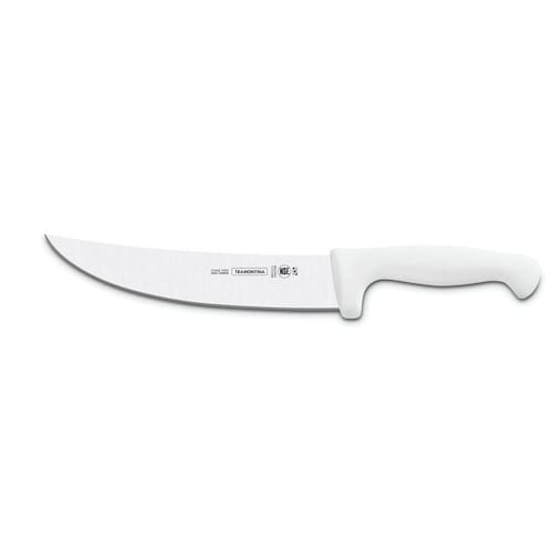 Faca Para Carne 12" Tramontina Branco Lâmina Em Aço Inox Tramontina Faca para carne 12 Tramontina Branco lâmina em Aço Inox Tramontina - Qualidade e durabilidade para profissionais que trabalham muito. Com tecnologia de ponta, as facas profissionais estão sempre preparadas para entrar em ação e fazer bonito com qualquer ingrediente. Eficiência é o que não falta. A altíssima qualidade das lâminas, resultado do tratamento térmico composto por têmpera (aquecimento da lâmina), subzero (resfriamento de 50 a 196 graus negativos) e revenimento (aumento da elasticidade do aço) garante vida longa e eficiente. A anatomia e ergonomia do cabo de polipropileno texturizado, injetado diretamente sobre a espiga da lâmina, oferecem segurança e conforto durante o manuseio. A proteção antimicrobiana inibe e reduz o crescimento de bactérias e fungos. Essa tecnologia é incorporada durante o processo de fabrição do cabo e dura por toda vida útil do produto, mas não não elimina a necessidade de lavá-los.OrientaçõesLâmina de aço inox DIN 1.4110. Cabo de polipropileno.ObservaçõesUSO SEGURO E ADEQUADO: Produtos cortantes e perfurantes, tenha cuidado ao manusear e mantenha fora do alcance das crianças. Para maior durabilidade dos produtos recomenda-se secar bem depois de lavar, mesmo após lavagem em máquina de lavar. Para descarte dos produtos e embalagens sigas as orientações de reciclagem vigentes.Características GeraisEAN137891112089600DUN1417891112089607NCM8211.92.10Peso Líquido0,2030 kg.Peso Bruto0,2080 kg.Metragem0,000536 m.Dimensões Embalagem (Compr. X Larg. X Alt.)440x 53x 23 mm.Dimensões Produto (Compr. X Larg. X Alt.)439x 84x 25 mm.Espessura3,0 mm.Cor 1FFFFFF Hexa Características Gerais do Produto: Garantia: - 1 Ano