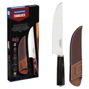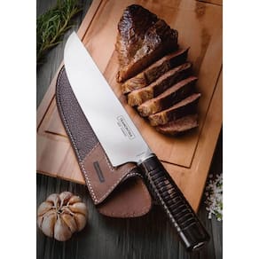 Faca para Carne Tramontina 8' Aço Inox e Cabo de Madeira Polywood com Bainha de Couro.