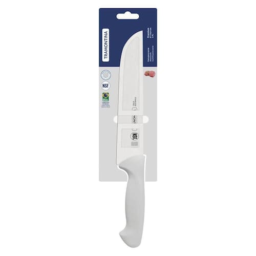 Faca Para Carne Tramontina Premium Com Lamina De Aço Inox E Cabo De Polipropileno Branco 8" Faca para Carne Tramontina Premium com Lâmina de Aço Inox e Cabo de Polipropileno Branco 8 A Faca para Carne Tramontina Premium com Lâmina de Aço Inox e Cabo de Polipropileno Branco 8 polegadas é a escolha certa para sua cozinha. Uma faca de alta performance, possui lâmina de 8 polegadas em aço inox com tratamento térmico que proporciona alta durabilidade no fio de corte. Seu cabo de polipropileno na cor branca é anatômico e texturizado, garantindo um uso mais seguro e um manuseio mais confortável. Além disso, pode ser lavada na máquina de lavar louças e é super fácil de limpar. Uma faca perfeita para auxiliar no corte de diversos alimentos e que vai otimizar a sua rotina na cozinha!