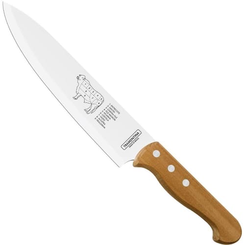 Faca para Churrasco Carne Tramontina 8' com Lâmina em Aço Inox e Cabo de Madeira Natural.