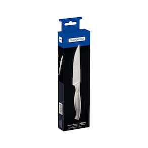 Antes da primeira utilização, lave bem a peça e seque-a. Produto cortante e perfurante: tenha cuidado ao manusear e mantenha fora do alcance das crianças. Para maior durabilidade do produto recomenda-se secar bem antes de guardar, mesmo após lavagem em máquina. Recomenda-se o uso de tábuas de polipropileno ou madeira da Tramontina para maior durabilidade do fio da faca. Não é indicado o uso da faca para o corte de alimentos congelados. Para descarte dos produtos e embalagens siga as orientações de reciclagem vigentes.