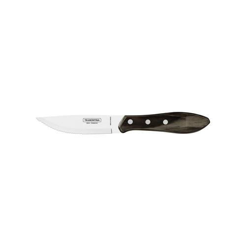 A Faca para Churrasco Jumbo Tramontina com Lâmina em Aço Inox e Cabo de Madeira Polywood Castanho 5 polegadas leva mais resistência e durabilidade na hora de saborear aquele churrasco especial. Produzida com lâmina em aço inox e um estiloso cabo em madeira tratada Polywood, ela vem na cor castanho e é perfeita para tornar sua mesa ainda mais bonita. Além disso, possui um corte perfeito e conta com resistência ao tempo e à umidade. Além disso, é possível lavar a peça na máquina de lavar louças. É uma peça que não pode faltar na sua cozinha.