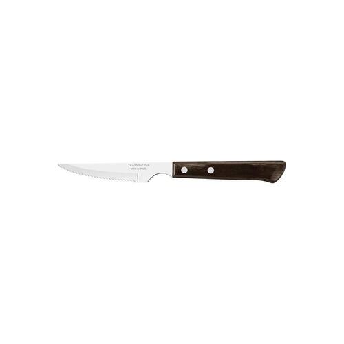Faca Para Churrasco Tramontina 4" Em Aço Inox E Cabo Em Madeira Polywood Castanho Tramontina Faca para Churrasco Tramontina 4 em Aço Inox e Cabo em Madeira Polywood Castanho Tramontina - Saboreie um bom churrasco com os melhores talheres. Com a Faca para Churrasco Tramontina com Lâmina em Aço Inox e Cabo em Madeira Polywood Castanho 4 polegadas você vai ter uma peça cheia de estilo e praticidade para acompanhar as carnes mais deliciosas. Produzida com lâmina em aço inox e cabo em madeira tratada Polywood, ela embeleza sua mesa com sua estilosa cor castanho. É uma peça durável que corta com perfeição e qualidade.OrientaçõesLâmina de aço inox têm maior durabilidade do fio devido ao tratamento térmico. Cabo de madeira tratada Polywood é resistentes à impactos e alta temperaturas garantindo maior resistência e durabilidade. Rebites de alumínio. Pode ir à máquina de lavar louças facilitando seu dia a dia.ObservaçõesAntes da primeira utilização, lave bem as peças e seque-as. Tenha cuidado ao manusear produtos cortantes e perfurantes e mantenha-os fora do alcance de crianças. Para maior durabilidade dos produtos, recomenda-se secar bem antes de guardar, mesmo após lavagem em máquina. Para descarte dos produtos e embalagens siga as orientações de reciclagem vigentes.Características GeraisEAN137891112104969DUN1417891112104966NCM8211.91.00Peso Líquido0,0456 kg.Peso Bruto0,0456 kg.Metragem0,000058 m.Dimensões Embalagem (Compr. X Larg. X Alt.)229x 21x 12 mm.Dimensões Produto (Compr. X Larg. X Alt.)218x 22x 13 mm.Cor 14E3629 Hexa Características Gerais do Produto: Garantia: - 1 Ano