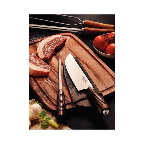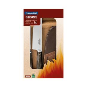 O churrasqueiro é sempre o último a sentar à mesa. Mas para garantir que os convidados também tratem o churrasco com respeito, nada melhor do que escolher os talheres certos para isso. A linha Churrasco da Tramontina possui 3 peças, cabos de madeira Polywood, que resistem ao tempo e a umidade e lâminas em aço inox para garantir o corte perfeito das carnes. Este kit é tudo que você precisa para seu churrasco poder apresentar muito estilo e sabor, sempre garantindo precisão, funcionalidade, beleza e a clássica qualidade da Tramontina que você com certeza já conhece. Características: Marca: Tramontina Código do Fabricante: 21199995 Linha: Churrasco Cor: Castanho Material das Lâminas: Aço inox Material dos Cabos: Madeira Polywood Material da Bainha: Couro Conteúdo: 1 Chaira 8 e 1 Faca para Carne 8 Compatível com Lava-louças: Sim