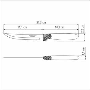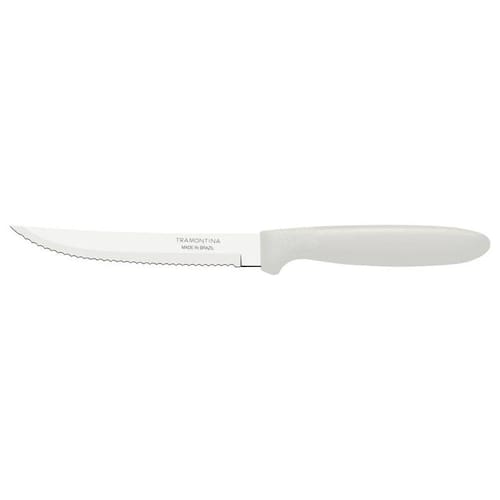 A Faca para Churrasco Tramontina Ipanema com Lâmina em Aço Inox e Cabo de Polipropileno Branco 5 polegadas é perfeita para quem gosta de uma cozinha básica, sem abrir mão da elegância. Produzida com lâmina em aço inox, que garante mais resistência e durabilidade, ela ainda proporciona o corte perfeito dos alimentos. Seu cabo na cor branca é feito em polipropileno e proporciona um manuseio muito mais confortável e seguro, além de levar mais sofisticação a sua cozinha. A faca ainda é muito fácil de limpar e pode ir à máquina de lavar louças. O item perfeito para quem preza por simplicidade e qualidade! A lâmina de aço inox tem maior durabilidade do fio devido ao tratamento térmico. O cabo de polipropileno possui maior resistência e durabilidade. Pode ir à máquina de lavar louças facilitando seu dia a dia. Antes da primeira utilização, lave bem a peça e seque-a. Produto cortante e perfurante: tenha cuidado ao manusear e mantenha fora do alcance das crianças. Para maior durabilidade do produto recomenda-se secar bem antes de guardar, mesmo após lavagem em máquina. Para descarte do produto e embalagem siga as orientações de reciclagem vigentes.