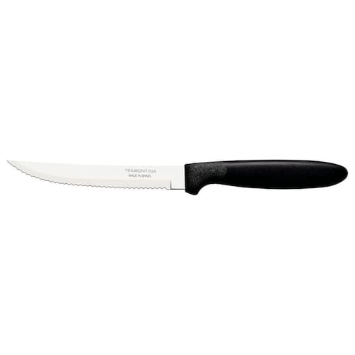 Para suas refeições diárias ficarem ainda melhor, você precisa contar com a Faca para Churrasco Tramontina Ipanema com Lâmina em Aço Inox e Cabo de Polipropileno Preto 5 polegadas. Ideal para lhe acompanhar nas principais refeições do dia, ela é produzida com lâmina em aço inox, que garante mais resistência e durabilidade, além de proporcionar um corte perfeito. Seu cabo na cor preta é feito em polipropileno e proporciona um manuseio muito mais confortável, além de ser muito sofisticado. A faca ainda é muito fácil de limpar e pode ir à máquina de lavar louças. Mais um item Tramontina pensado especialmente em você! Orientações A lâmina de aço inox tem maior durabilidade do fio devido ao tratamento térmico. O cabo de polipropileno possui maior resistência e durabilidade. Pode ir à máquina de lavar louças facilitando seu dia a dia. Características Gerais EAN13 7891112045095 DUN14 17891112045092 NCM 8211.91.00 Peso Líquido 0,0237 kg. Peso Bruto 0,0237 kg. Metragem 0,000047 m³. Dimensões Embalagem (Compr. X Larg. X Alt.) 213x 20x 11 mm. Dimensões Produto (Compr. X Larg. X Alt.) 213x 22x 11 mm. Cor 1 000000 Hexa Observações Antes da primeira utilização, lave bem a peça e seque-a.Produto cortante e perfurante: tenha cuidado ao manusear e mantenha fora do alcance das crianças.Para maior durabilidade do produto recomenda-se secar bem antes de guardar, mesmo após lavagem em máquina. Para descarte do produto e embalagem siga as orientações de reciclagem vigentes.