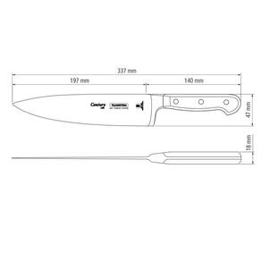 - A faca Chef Tramontina Century com lâmina em aço inox e cabo de policarbonato e fibra de vidro 8 polegadas da linha Century oferece todas as características essenciais para a realização de cortes perfeitos.