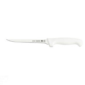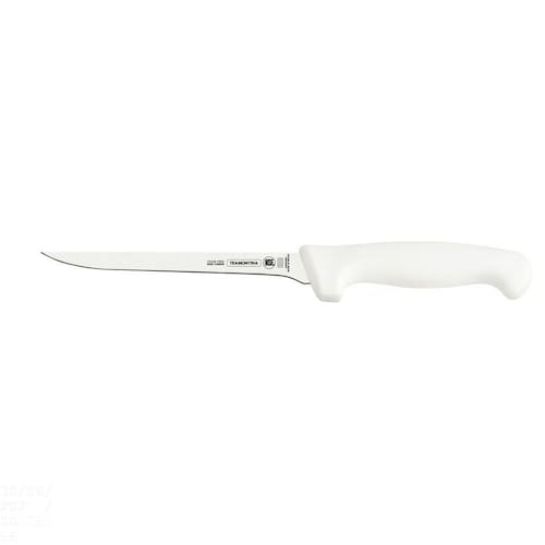 Qualidade e durabilidade para profissionais que trabalham muito. Com tecnologia de ponta, as facas profissionais estão sempre preparadas para entrar em ação e fazer bonito com qualquer ingrediente. Eficiência é o que não falta. A altíssima qualidade das lâminas, resultado do tratamento térmico composto por têmpera (aquecimento da lâmina), subzero (resfriamento de 50 a 196 graus negativos) e revenimento (aumento da elasticidade do aço) garante vida longa e eficiente. A anatomia e ergonomia do cabo de polipropileno texturizado, injetado diretamente sobre a espiga da lâmina, oferecem segurança e conforto durante o manuseio. A proteção antimicrobiana inibe e reduz o crescimento de bactérias e fungos. Essa tecnologia é incorporada durante o processo de fabrição do cabo e dura por toda vida útil do produto, mas não não elimina a necessidade de lavá-los. Orientações Lâmina flexível de aço inox DIN 1.4110.Cabo de polipropileno. Características Gerais EAN13 7891112052468 DUN14 17891112052465 NCM 8211.92.10 Peso Líquido 0,0840 kg. Peso Bruto 0,0870 kg. Metragem 0,000264 m³. Dimensões Embalagem (Compr. X Larg. X Alt.) 300x 40x 22 mm. Dimensões Produto (Compr. X Larg. X Alt.) 297x 43x 22 mm. Espessura 2,5 mm. Cor 1 FFFFFF Hexa Observações USO SEGURO E ADEQUADO:Produtos cortantes e perfurantes, tenha cuidado ao manusear e mantenha fora do alcance das crianças.Para maior durabilidade dos produtos recomenda-se secar bem depois de lavar, mesmo após lavagem em máquina de lavar.Para descarte dos produtos e embalagens sigas as orientações de reciclagem vigentes.