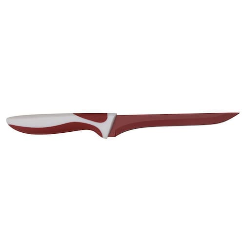 Faca de aço inoxidável com revestimento antiaderente em cerâmica Cook & Dream. Design inovador, Cobertura de avançado endurecimento da capa protetora de cerâmica para maior durabilidade. Superfície antiaderente que evita a transferência de odores e sabores. Cabo anti-deslizante. Resistente a temperaturas até 280°. Não oxida. Instruções para manutenção: Lavar antes de usar, secar bem depois de cada lavagem, não limpar com produtos abrasivos, apto para máquina de lavar, mas recomenda-se lavagem à mão. Precauções: mantenha fora do alcance de crianças, serve apenas para coloraçãote de alimentos. Material:Aço inoxidável com revestimento em cerâmica Dimensões do produto:2,5x3,5x28,5Cm coloração:Vermelha e branca Conteúdo da embalagem:1 Faca Marca:Cook & Dream Garantia:3 meses *Imagens meramente ilustrativas. Cuidado ao manusear o produto quando quente. Riscos de queimadura.