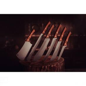 Para preparar e limpar a carne para o seu churrasco, a faca para desossar Tramontina Churrasco Black com lâmina em aço inox escurecido e cabo de madeira 6 polegadas é indispensável em seu jogo de facas. Ela é desenvolvida com materiais de alta qualidade e vai facilitar ainda mais separar a carne do osso ou tirar sua gordura, pois a lâmina de aço inox escurecido conta com alto poder de corte. Seu cabo é em madeira e possui rebites que proporcionam um manuseio muito mais firme e um toque rústico à peça. Garanta já a sua e deixe esse momento muito mais eficiente! Orientações Ideal para separar a carne dos ossos e tirar a gordura.Lâmina de aço inox escurecido. Resistente e robusta.Cabo de madeira com design anatômico que torna o uso muito mais confortável.Rebites aço inox escurecido. Características Gerais EAN13 7891112296749 DUN14 17891112296746 NCM 8211.92.10 Peso Líquido 0,1300 kg. Peso Bruto 0,1500 kg. Metragem 0,000509 m³. Dimensões Embalagem (Compr. X Larg. X Alt.) 70x 21x 346 mm. Dimensões Produto (Compr. X Larg. X Alt.) 294x 38x 22 mm. Observações Antes da primeira utilização, lave bem a peça e seque-a. Produto cortante e perfurante: tenha cuidado ao manusear e mantenha fora do alcance das crianças. Não utilize materiais abrasivos para limpeza e para maior durabilidade do produto recomenda-se secar bem antes de guardar. Não utilize em máquinas de lavar. Para descarte do produto e embalagem siga as orientações de reciclagem vigentes.