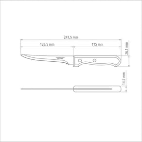Faca Para Desossar Tramontina Dynamic Com Lâmina Em Aço Inox E Cabo De Madeira Natural 5" Tramontina Faca para Desossar Tramontina Dynamic com Lâmina em Aço Inox e Cabo de Madeira Natural 5 Tramontina - Leve mais praticidade e bom gosto para sua cozinha com a Faca para Desossar Tramontina Dynamic com Lâmina de Aço Inox e Cabo de Madeira Natural 5 Polegadas. Ideal para separar a carne dos ossos e tirar a gordura, ela auxilia você nas tarefas do dia a dia. Produzida com lâmina de aço inox, apresenta maior durabilidade e resistência devido ao tratamento térmico que recebe. Possui ainda cabo em madeira natural e rebites de alumínio. É uma faca com lâmina de 5 polegadas, que torna o visual da sua cozinha mais rústico e cheio de estilo. Garanta já a sua!OrientaçõesLâmina de aço inox com maior durabilidade do fio devido ao tratamento térmico. Cabo de madeira natural. Rebites de alumínio.ObservaçõesAntes da primeira utilização, lave bem as peças e seque-as. Tenha cuidado ao manusear produtos cortantes e perfurantes e mantenha-os fora do alcance de crianças. Para maior durabilidade dos produtos, recomenda-se secar bem antes de guardar. Para descarte dos produtos e embalagens siga as orientações de reciclagem vigentes.Características GeraisEAN137891112016682DUN1417891112016689NCM8211.92.10Peso Líquido0,0492 kg.Peso Bruto0,0650 kg.Metragem0,000354 m.Dimensões Embalagem (Compr. X Larg. X Alt.)16x 67x 330 mm.Dimensões Produto (Compr. X Larg. X Alt.)241x 26x 15 mm. Características Gerais do Produto: - Cor: Natural Garantia: - 1 Ano