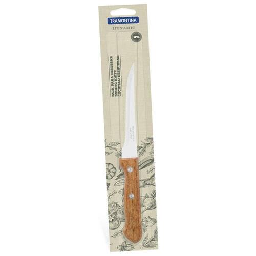 Faca Para Desossar Tramontina Dynamic Com Lâmina Em Aço Inox E Cabo De Madeira Natural 5" Faca para Desossar Tramontina Dynamic com Lâmina em Aço Inox e Cabo de Madeira Natural 5 Leve mais praticidade e bom gosto para sua cozinha com a Faca para Desossar Tramontina Dynamic com Lâmina de Aço Inox e Cabo de Madeira Natural 5 Polegadas. Ideal para separar a carne dos ossos e tirar a gordura, ela auxilia você nas tarefas do dia a dia. Produzida com lâmina de aço inox, apresenta maior durabilidade e resistência devido ao tratamento térmico que recebe. Possui ainda cabo em madeira natural e rebites de alumínio. É uma faca com lâmina de 5 polegadas, que torna o visual da sua cozinha mais rústico e cheio de estilo. Garanta já a sua!