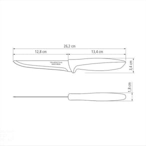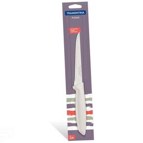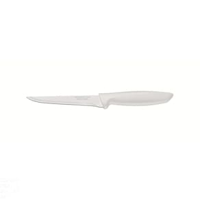 A Faca para Desossar Tramontina Plenus com Lâmina em Aço Inox e Cabo de Polipropileno Off White 5 Polegadas da Linha Plenus auxilia você nas tarefas diárias. Ideal para limpar a carne próxima do osso e tirar gorduras de diferentes tipos de carnes, ela possui lâmina de 5 polegadas produzida em aço inox. O cabo de polipropileno traz conforto e bem-estar para as atividades do dia a dia. É uma faca que facilita na preparação das mais diferentes receitas. Com a linha Tramontina Plenus, você terá o melhor em sua cozinha! Orientações Ideal para separar a carne dos ossos e tirar a gordura.A lâmina de aço inox têm maior durabilidade do fio devido ao tratamento térmico. O cabo de polipropileno possui maior resistência e durabilidade. Pode ir à máquina de lavar louças facilitando seu dia a dia. Características Gerais EAN13 7891112225725 DUN14 17891112225722 NCM 8211.92.10 Peso Líquido 0,0604 kg. Peso Bruto 0,0754 kg. Metragem 0,000425 m³. Dimensões Embalagem (Compr. X Larg. X Alt.) 19x 65x 344 mm. Dimensões Produto (Compr. X Larg. X Alt.) 292x 34x 18 mm. Cor 1 D9D9D6 Hexa Observações Antes da primeira utilização, lave bem a peça e seque-a. Produto cortante e perfurante: tenha cuidado ao manusear e mantenha fora do alcance das crianças. Para maior durabilidade do produto recomenda-se secar bem antes de guardar, mesmo após lavagem em máquina. Recomenda-se o uso de tábuas de polipropileno ou madeira da Tramontina para maior durabilidade do fio da faca. Não é indicado o uso da faca para o corte de alimentos congelados. Mantenha sempre sua faca afiada utilizando os afiadores da Tramontina.Para descarte dos produtos e embalagens siga as orientações de reciclagem vigentes.