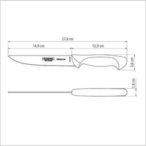 Faca Para Desossar Tramontina Premium Com Lâmina Em Aço Inox E Cabo De Polipropileno Branco 6 As facas da linha Premium Tramontina tem lâmina de aço inoxidável e cabo anatômico, tornado seu uso diário fácil e prático.- Linha PREMIUM. Recomendações de Uso: Antes do uso: Antes de utilizar o , remova as eventuais etiquetas e lave-o com água quente e de uso:Durante a lavagem use somente esponja macia, outros tipos de produtos, como palha de aço, poderão riscar ou prejudicar o brilho do aço inox. Enxágue bem a peça a fim de remover totalmente os resíduos dos produtos de limpeza, que por serem abrasivos, podem danificar o inox. Após a lavagem enxugue a faca, pois as substâncias químicas contidas na água poderão causar manchas. Sempre que possível use água quente, pois renova o brilho do talher. Evite o das peças com superfícies quentes, pois podem provocar a descoloração do produto. Quando usar a máquina de lavar louça, recomendamos retirar o talher logo que tenha terminado o ciclo enxaguar, a fim de que os mesmos sejam secados manualmente.- Tenha cuidado ao Manusear produtos cortantes e perfurantes e mantenha-os fora do alcance de crianças.- Foto meramente ilustrativa.- Embalagem blister. Informações Adicionais: