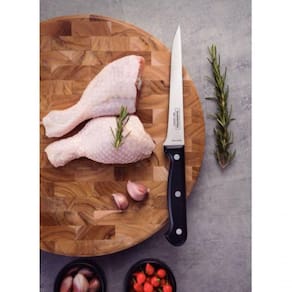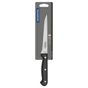 Faca Para Desossar Tramontina Ultracorte 6 Inox Preta Leve o bom gosto e praticidade das facas Tramontina para dentro da sua casa! Com a Faca para Desossar Tramontina Ultracorte com Lâmina em Aço Inox e Cabo de Polipropileno Preto 6 Polegadas você irá preparar receitas com muito mais sabor e facilidade. Ideal para separar a carne dos ossos e tirar a gordura, ela possui 6 polegadas e é produzida com materiais de excelente qualidade. Com lâmina de aço inox, garante maior durabilidade do fio devido ao tratamento térmico. Recomendações de Uso: - Antes da primeira utilização, lave bem a peça e seque-a.- Produto cortante e perfurante: tenha cuidado ao manusear e mantenha fora do alcance das crianças.- Para maior durabilidade do produto recomenda-se secar bem antes de guardar, mesmo após lavagem em máquina.- Recomenda-se o uso de tábuas de polipropileno ou madeira da Tramontina para maior durabilidade do fio da faca.- Não é indicado o uso da faca para o corte de alimentos congelados.- Mantenha sempre sua faca afiada utilizando os afiadores da Tramontina.- Para descarte dos produtos e embalagens siga as orientações de reciclagem vigentes. Informações Adicionais: