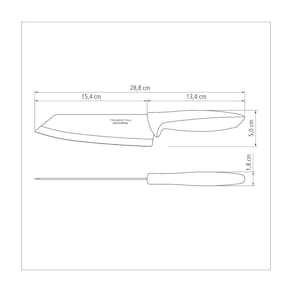 Ideal para cortar, fatiar e picar. A lâmina de aço inox têm maior durabilidade do fio devido ao tratamento térmico. O cabo de polipropileno possui maior resistência e durabilidade. Pode ir à máquina de lavar louças facilitando seu dia a dia.