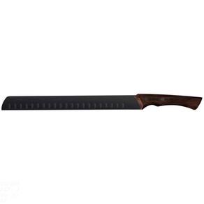 Para preparar aquele steak delicioso e bem fininho, a faca para fatiar Tramontina Churrasco Black com lâmina em aço inox escurecido e cabo de madeira 12 polegadas será a peça perfeita. Desenvolvida com materiais de alta qualidade, ela é ideal para fatiar ou fazer porções de grandes pedaços de carne para seu churrasco e não deixa você passar vergonha, pois conta com sulcos que reduzem o atrito entre a carne e a lâmina. Sua lâmina é desenvolvida em aço inox escurecido e seu cabo é de madeira com rebites, duas características que garantem qualidade, resistência e praticidade durante o uso! Orientações Ideal para fatiar ou porcionar grandes pedaços de carne.Lâmina de aço inox escurecido. Resistente e robusta.Cabo de madeira com design anatômico que torna o uso muito mais confortável.Rebites aço inox escurecido. Características Gerais EAN13 7891112296824 DUN14 17891112296821 NCM 8211.92.10 Peso Líquido 0,2200 kg. Peso Bruto 0,2400 kg. Metragem 0,000972 m³. Dimensões Embalagem (Compr. X Larg. X Alt.) 90x 22x 491 mm. Dimensões Produto (Compr. X Larg. X Alt.) 435x 35x 22 mm. Observações Antes da primeira utilização, lave bem a peça e seque-a. Produto cortante e perfurante: tenha cuidado ao manusear e mantenha fora do alcance das crianças. Não utilize materiais abrasivos para limpeza e para maior durabilidade do produto recomenda-se secar bem antes de guardar. Não utilize em máquinas de lavar. Para descarte do produto e embalagem siga as orientações de reciclagem vigentes.