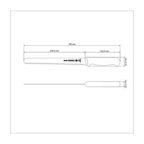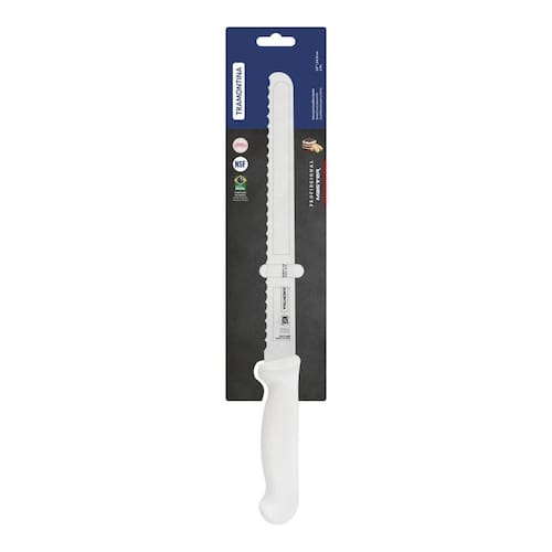 Faca Para Fiambres 10" Faca para fiambres 10 Qualidade e durabilidade para profissionais que trabalham muito. Com tecnologia de ponta, as facas profissionais estão sempre preparadas para entrar em ação e fazer bonito com qualquer ingrediente. Eficiência é o que não falta. A altíssima qualidade das lâminas, resultado do tratamento térmico composto por têmpera (aquecimento da lâmina), subzero (resfriamento de 50 a 196 graus negativos) e revenimento (aumento da elasticidade do aço) garante vida longa e eficiente. A anatomia e ergonomia do cabo de polipropileno texturizado, injetado diretamente sobre a espiga da lâmina, oferecem segurança e conforto durante o manuseio. A proteção antimicrobiana inibe e reduz o crescimento de bactérias e fungos. Essa tecnologia é incorporada durante o processo de fabrição do cabo e dura por toda vida útil do produto, mas não não elimina a necessidade de lavá-los.